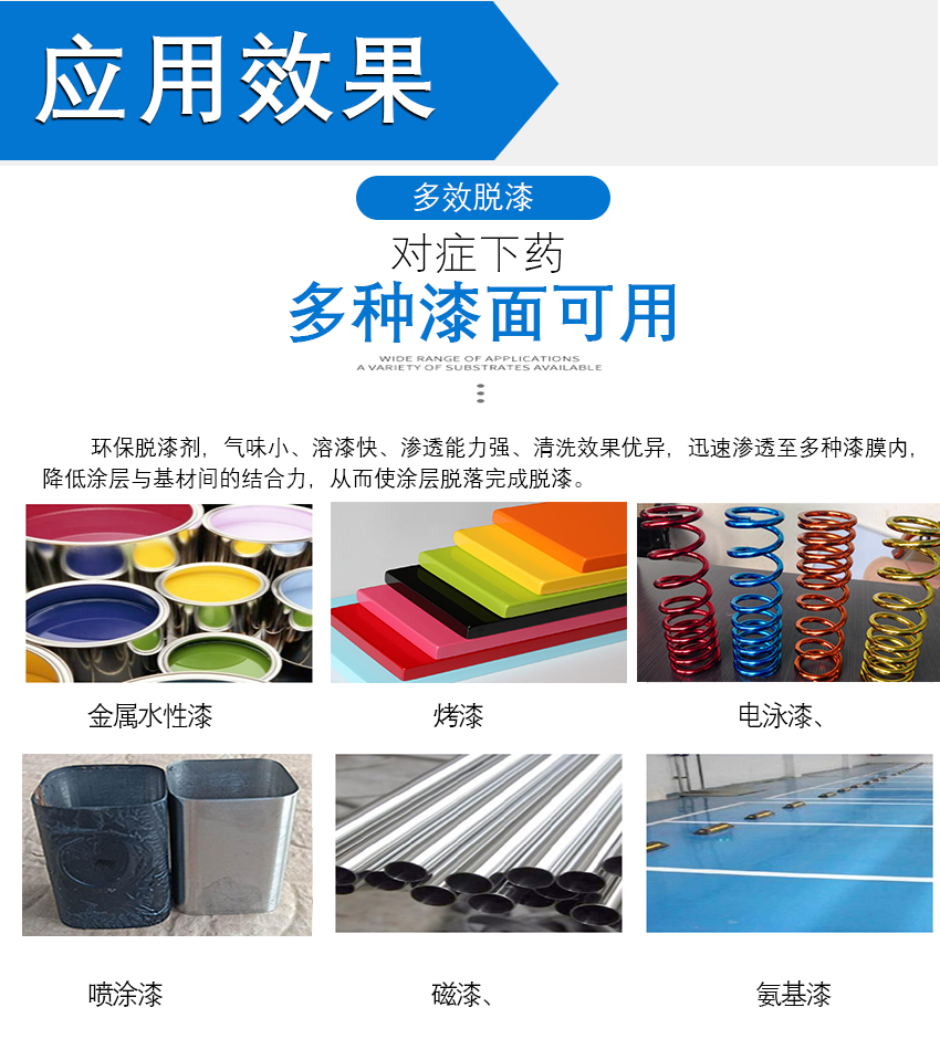 4、可脫除噴漆、烤漆、電泳漆、磁漆、氨基漆等30多種漆膜涂層。